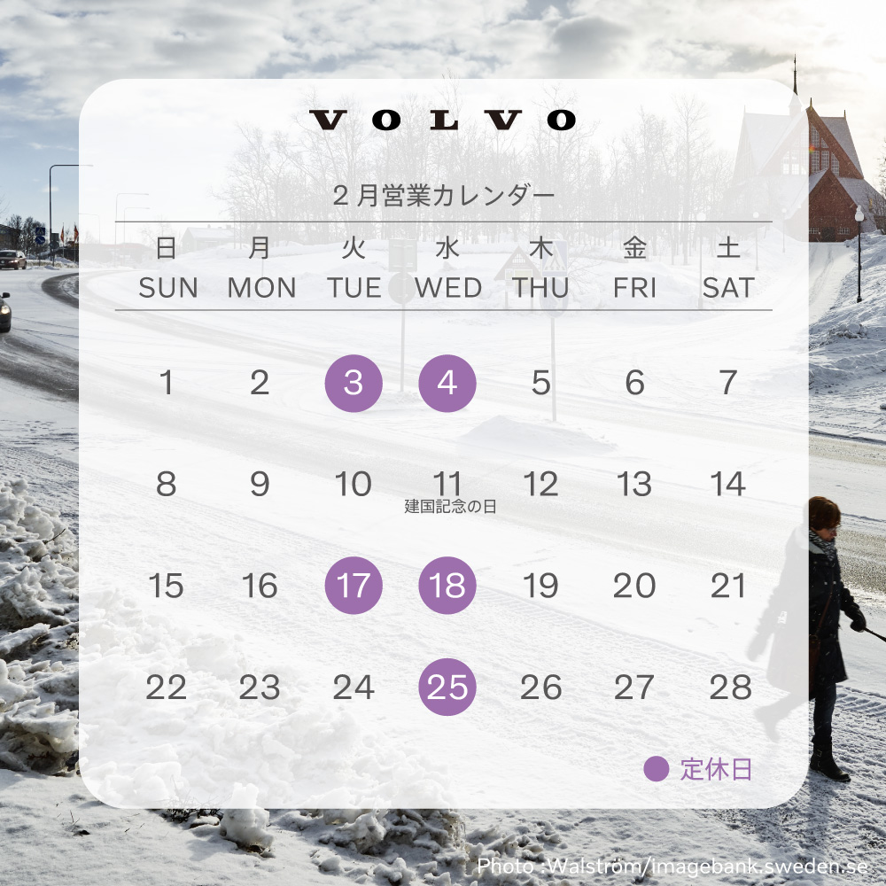 いつもボルボ・カー柏の葉の投稿をご覧いただきありがとうございます。 誠に勝手ながら2月は下記の日程が定休日でございます。